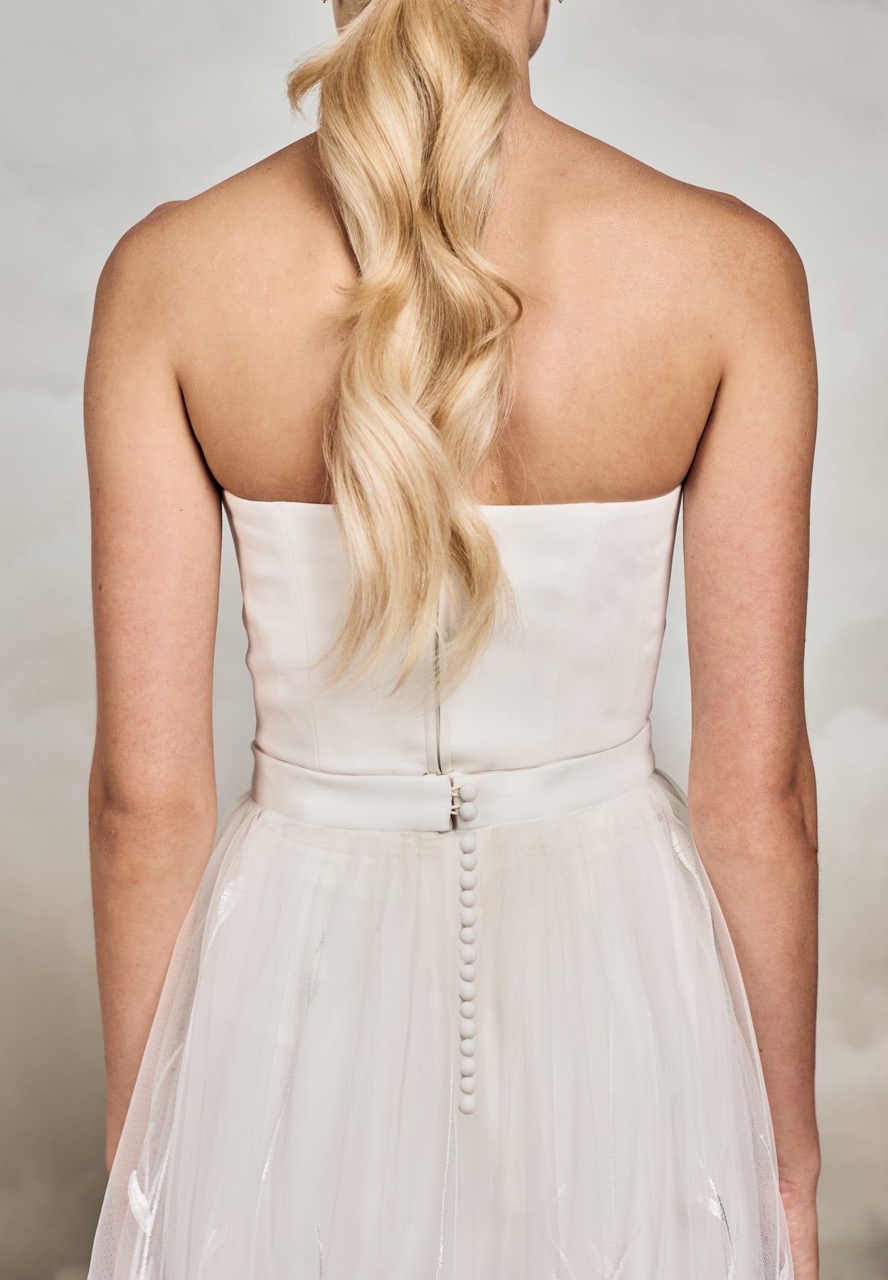 Outer: 100% Polyester Tulle with 100% Polyester chiffon details and contrasting 100% Polyester crepe waistband.