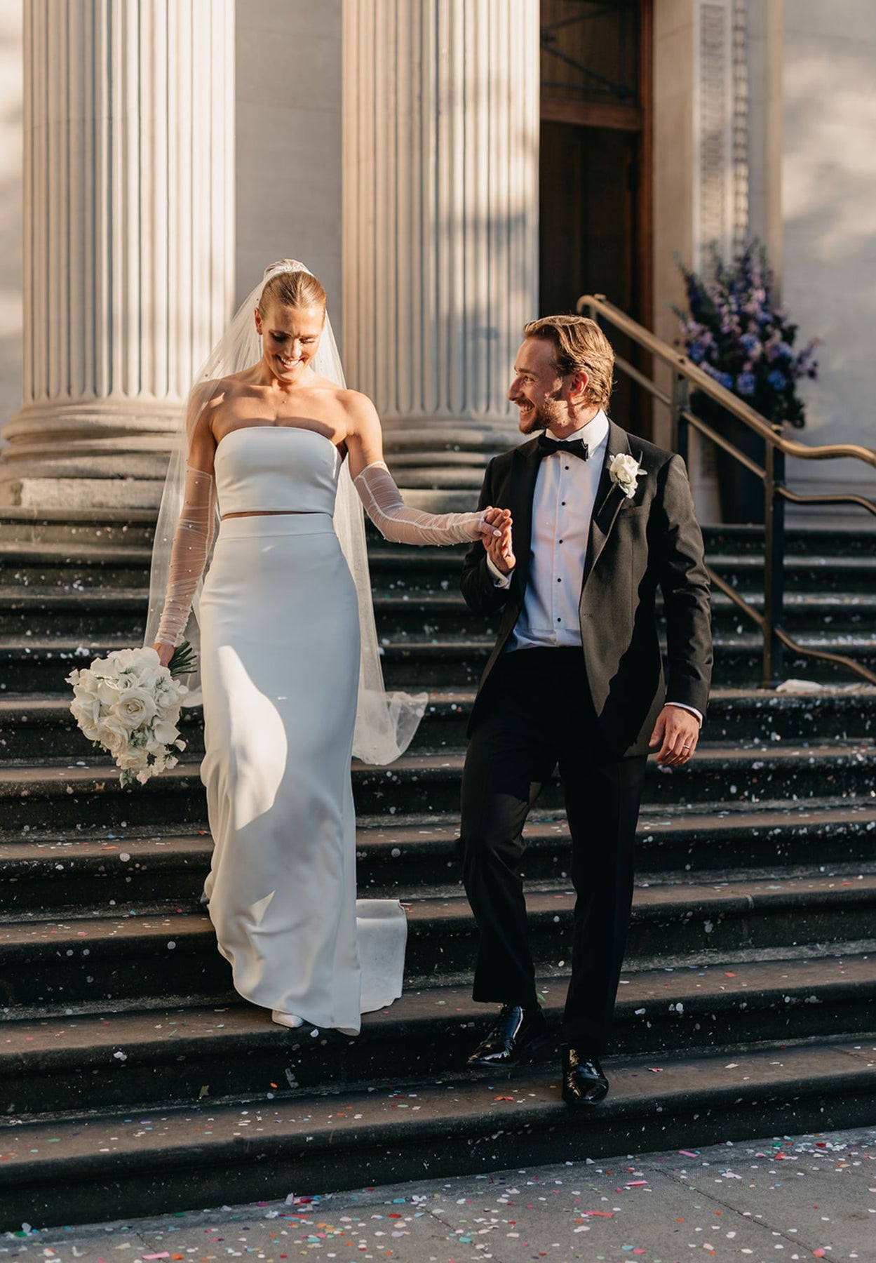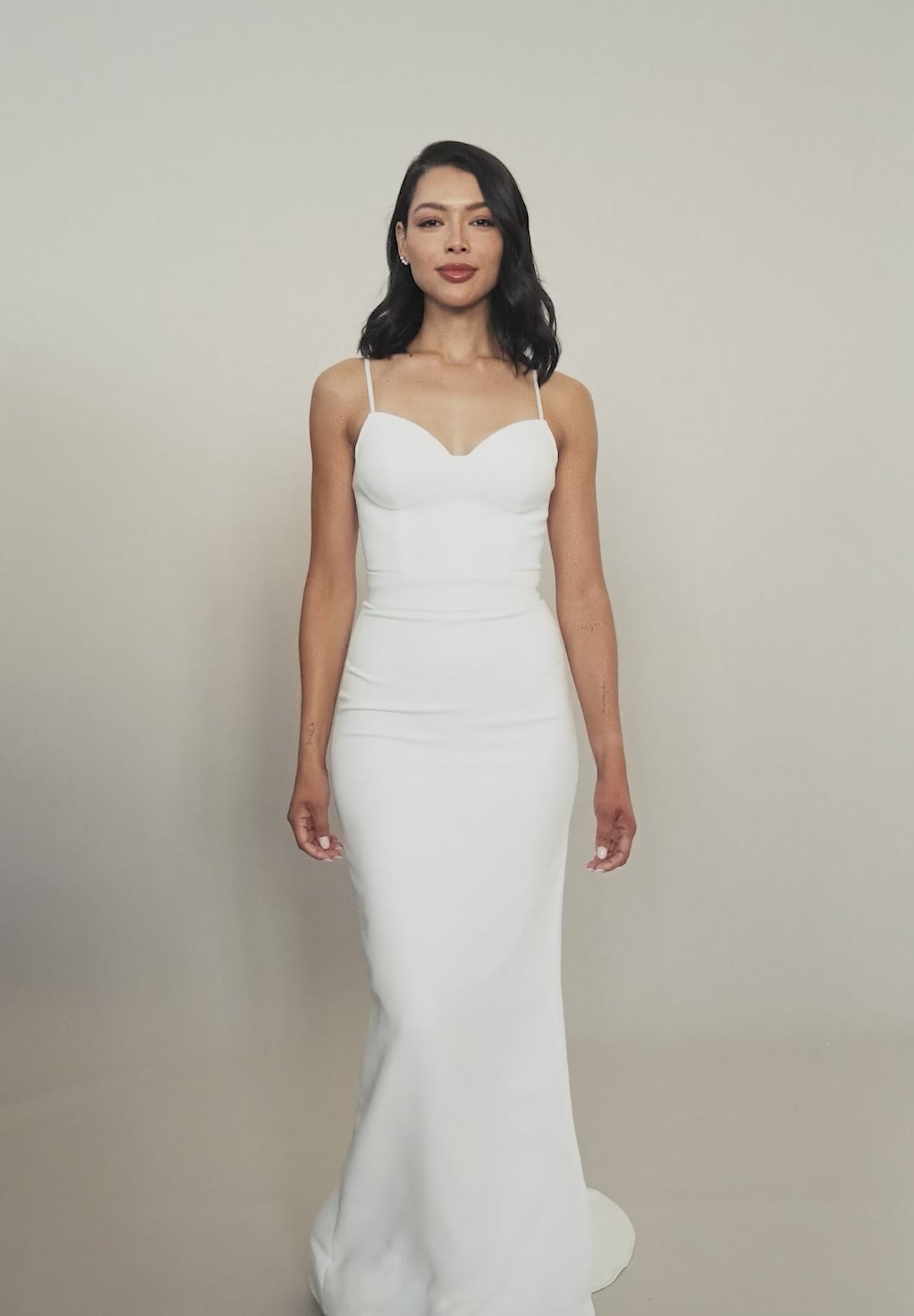 Cut from bone white heavy crepe, the fitted, floor-length Talli Skirt perfectly pairs with an array of our tops and toppers. The high, wide waistband elongates the body while cinching in the small of the waist. A triangular godet back inset adds movement and volume to the hemline of this skirt as well as adding a sweeping train.
